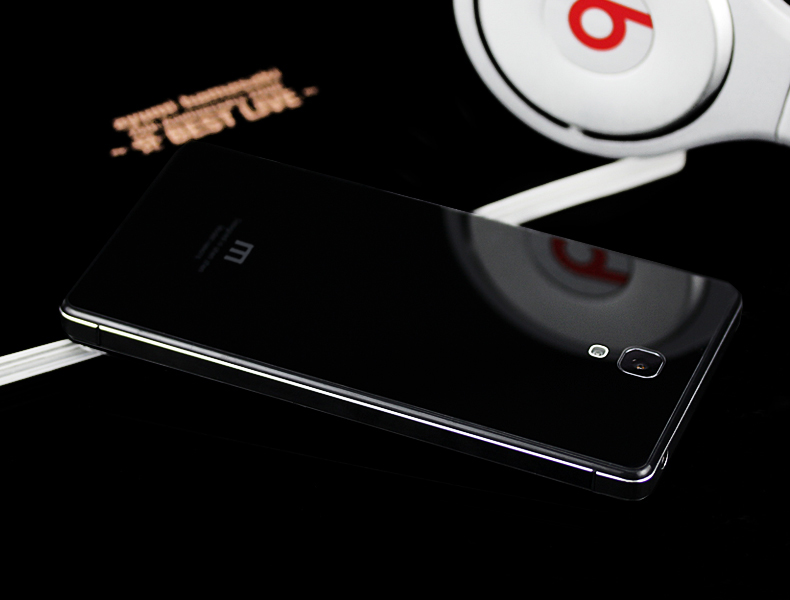 Black glass panel with black metal frame. Logo is with word “MI” in actual product.